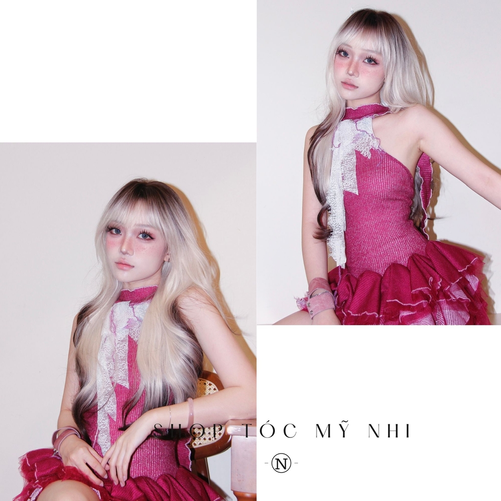 Tóc giả nguyên đầu xoăn layer mái thưa Hàn Quốc, màu chân đen nhuộm loang vàng bạch kim và đuôi nhuộm đen là mẫu tóc mang đậm dấu ấn cá tính và thời trang. Sự chuyển tông màu độc đáo theo kỹ thuật loang màu từ chân tóc đen sang vàng bạch kim rồi trở lại tông đen ở phần đuôi tạo nên hiệu ứng ombre đầy chiều sâu, bắt sáng tốt và vô cùng cuốn hút. Kiểu tóc xoăn layer giúp mái tóc trở nên bồng bềnh, mềm mại và dày dặn hơn, kết hợp với phần mái thưa chuẩn phong cách Hàn Quốc tạo cảm giác trẻ trung, thanh thoát và nhẹ nhàng. Gam màu cá tính nhưng vẫn hài hòa, dễ ứng dụng với nhiều phong cách – từ năng động, nổi bật đến nhẹ nhàng, thanh lịch. Đặc biệt, phần da đầu được dệt kim tỉ mỉ, mô phỏng chân thật theo tỉ lệ da đầu thật 1:1, mang lại cảm giác tự nhiên, chân thật đến từng chi tiết, giúp người dùng tự tin trong mọi hoàn cảnh. Đây là lựa chọn lý tưởng cho những ai muốn thay đổi diện mạo với một kiểu tóc độc đáo, hợp xu hướng và đầy cuốn hút.